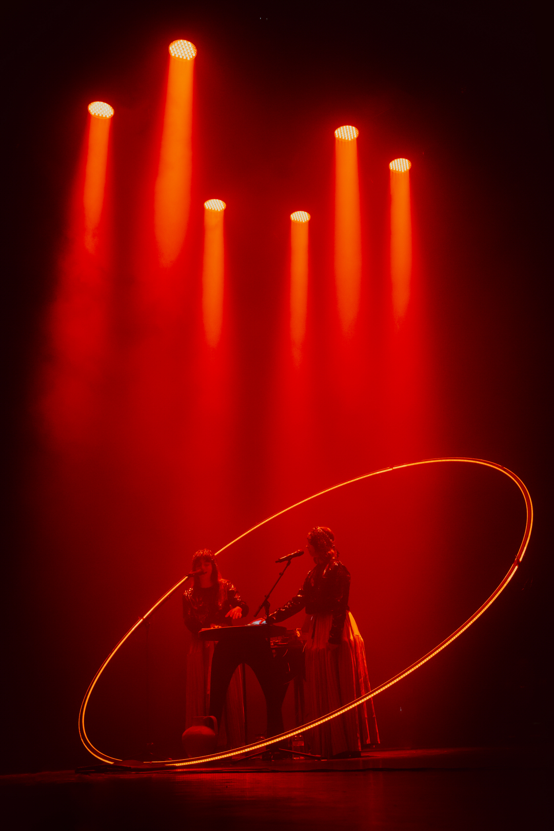 Fiat Lux, an album and live show by Tarta Relena, delves into timeless emotional conflicts such as love and jealousy. On stage, an LED ring designed to react to the voices of the duo becomes a dynamic, living third member of their performance. As they sing, the ring shifts in color, enhancing the emotional depth of the music. Pulsing and undulating in response to the intensity of the vocals, it creates a transformative atmosphere, surrounding the performers and audience with an immersive visual experience. The interplay of light and sound intertwines, reflecting the duality of the themes explore heightening the passion, tension, and vulnerability of their performance.